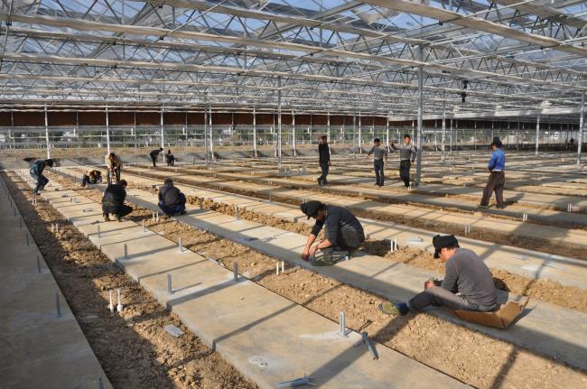 潮汐式灌溉苗床是目前国内比较先进的一种园艺灌溉栽培设施,它能够有效增加30%的栽培面积,节约70%的灌溉用水和30%的肥料,同时精确均匀地根部灌溉,减少了根部疾病,使根部系统发育更有活力,促进了植物生长,对提高园艺生产效率有极大的帮助。园区潮汐式灌溉系统工程的建设将大大提高温室栽培设施的科技含量,更好地发挥国家农业科技园区的科技引领示范作用。