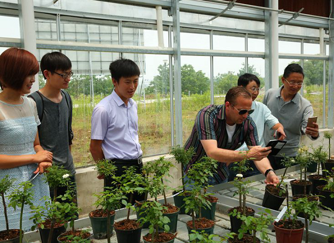 梅昂国际家族传承人马迪亚斯·梅昂实地考察了苏州市华冠园创园艺科技有限公司位于常熟国家农业科技园区主核心区蔬菜园艺创新区的月季新品种培育苗圃,听取了公司负责人对苗圃情况的介绍,当看到喜欢的月季新品种时,马迪亚斯·梅昂按捺不住激动的心情,细细了解相关情况,特别是对公司新嫁接培育的小型树月季 “棒棒糖”赞不绝口。