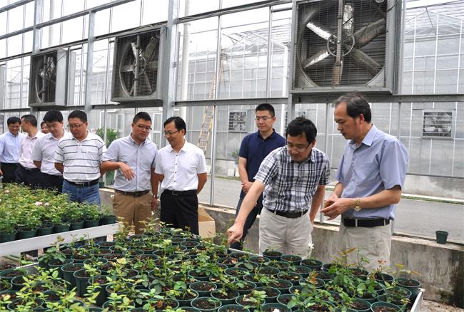 科技镇长团考察了园区蔬菜园艺创新中心的甜瓜袋式基质栽培和月季种苗培育等温室,在水稻育种区与育种专家端木银熙进行了简短交流,并参观了园区展示厅。