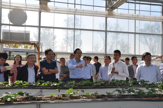 与会人员重点参观了园区智慧农业-温室物联网系统控制中心、智能化环境控制甜瓜温室和草莓温室,听取了相关介绍并观看了现场操作演示,与会人员充分肯定了园区在引领示范智慧农业发展方面的作用。2017年,园区对蔬菜园艺创新区近3万平米文洛式玻璃温室实施了智能化改造,总投资达100万元,包括1个室外气象站、1个点阵式LED显示屏、4台球型摄像机、13种室内环境传感器和15台定焦摄像机,该系统以先进的无线传感器、物联网、云平台、大数据以及互联网等信息技术为基础,利用传感器来监控大棚内的温度、湿度、光照和土壤湿度、土壤温度、CO2浓度等影响农作物生长的环境参数,通过计算机系统智能化分析并远程控制大棚内的水阀、加热、滴管、喷灌等设备,从而确保农作物能够在最佳的状态下进行生长。各级用户通过Web、PC与移动客户端可以访问数据与系统管理功能,对每个监测点的作物生长情况、空气温度、空气湿度、土壤温度、光照强度等作物生长过程中重要的参数进行实时监测、管理。可有效节约劳动用工30%左右,生产效益提升10%以上。