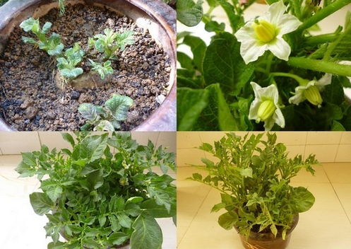 买土豆时专挑眼多的买,这样的土豆发芽率高。买回后放在塑料袋里,让它在自然条件下发芽。每个土豆上面都会有好几个小芽萌芽,有的还长出来了一些张牙舞爪的白生生的小根,啊,可以种了!