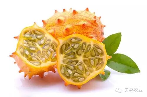 又名非洲角瓜、非洲黄瓜,原产于非洲喀拉哈里沙漠,外皮带刺为黄色,里面果肉绿色,细腻多籽,像黄瓜一样呈凝胶状,味道清甜。