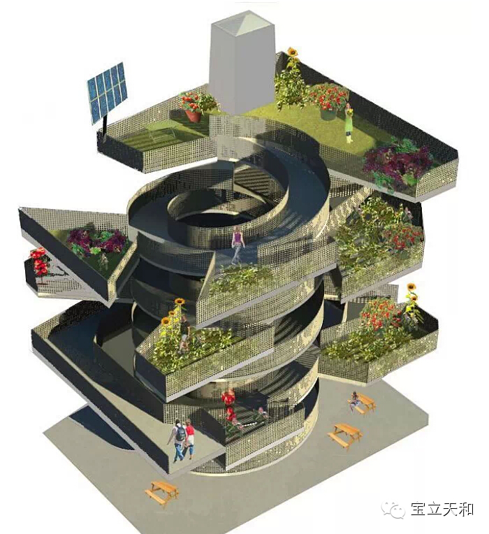 有效的能源提供多半来自于对风能的采集,它将可以每年提供200-600KWH的电能,另外,建筑外墙面附着的太阳能板也将是能源提供的一大途径。在保证居住和办公的同时,如何让纵向耕作为整个设计带来启发性和美感是其一大重点。