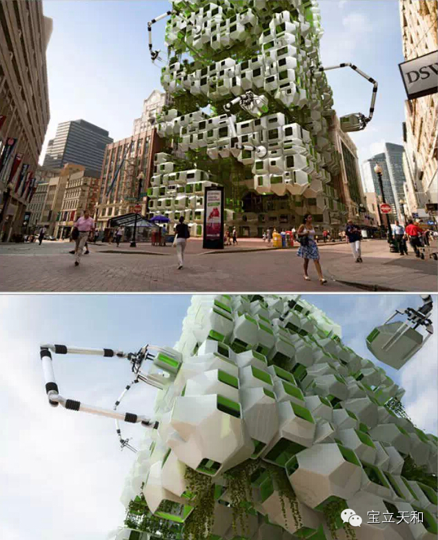 封面是波斯顿市中心的藻类布丁立体农场,通过机械手的调配和预制的九宫格生态吊舱,使城市绿化率瞬间放大几十倍。